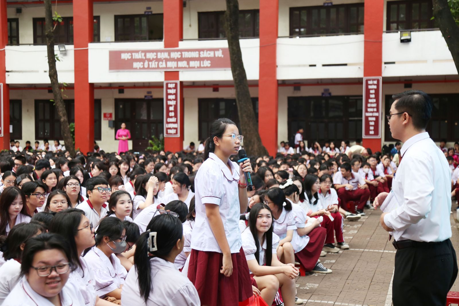 Thông qua các tiểu phẩm, hình ảnh minh họa và chia sẻ gần gũi, học sinh được khơi gợi nhận thức về tầm quan trọng của “văn minh học đường” — không phải là điều gì xa xôi, mà chính là những hành động giản dị, nhưng đầy giá trị nhân văn.