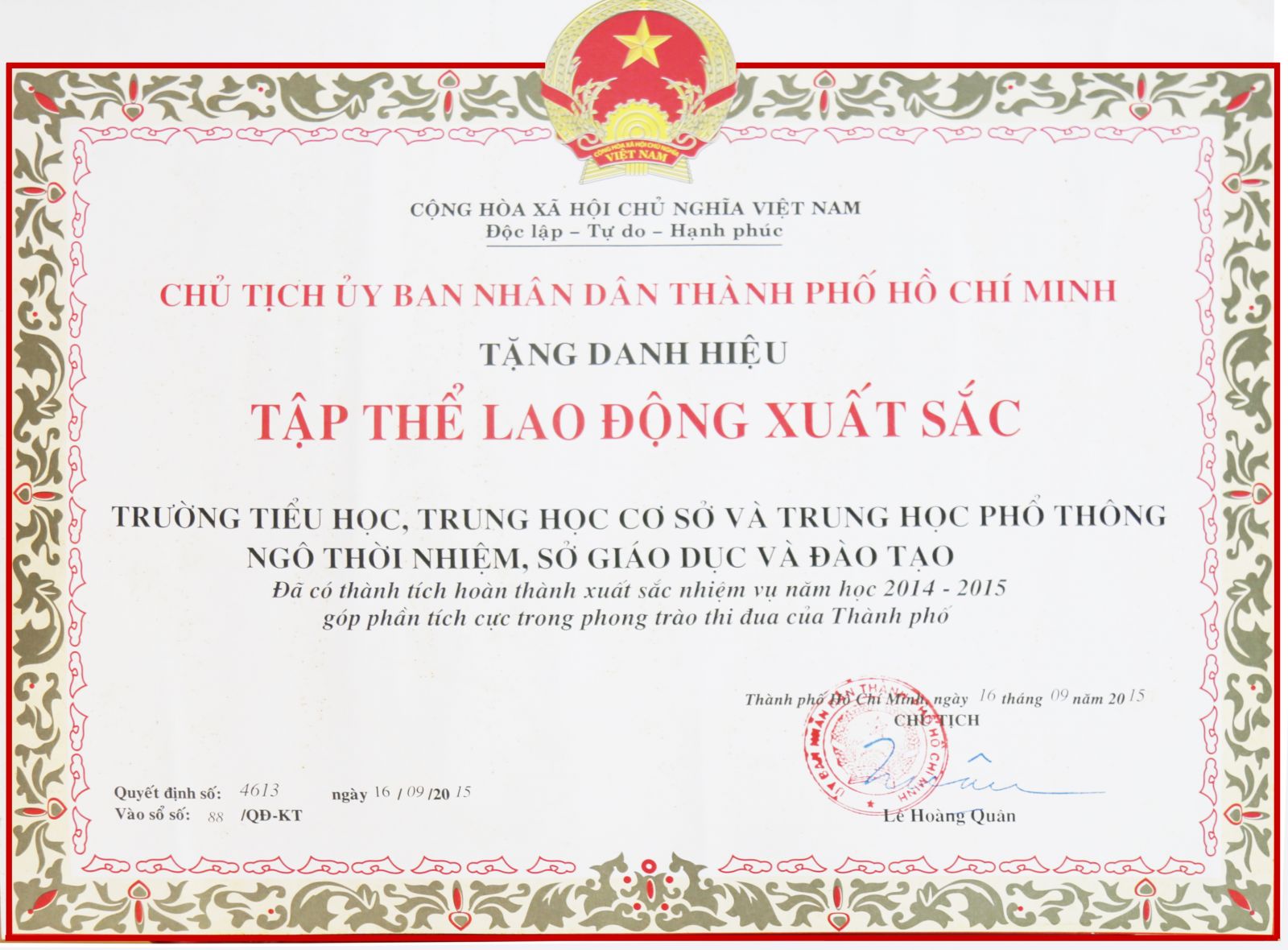 Danh hiệu Tập thể Lao động xuất sắc năm học 2014 - 2015