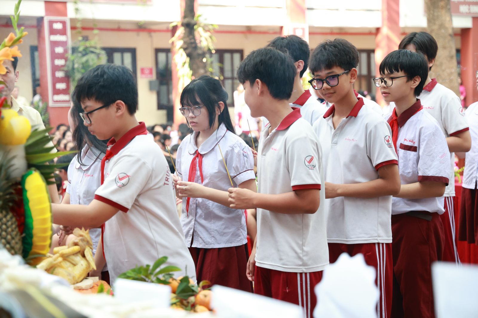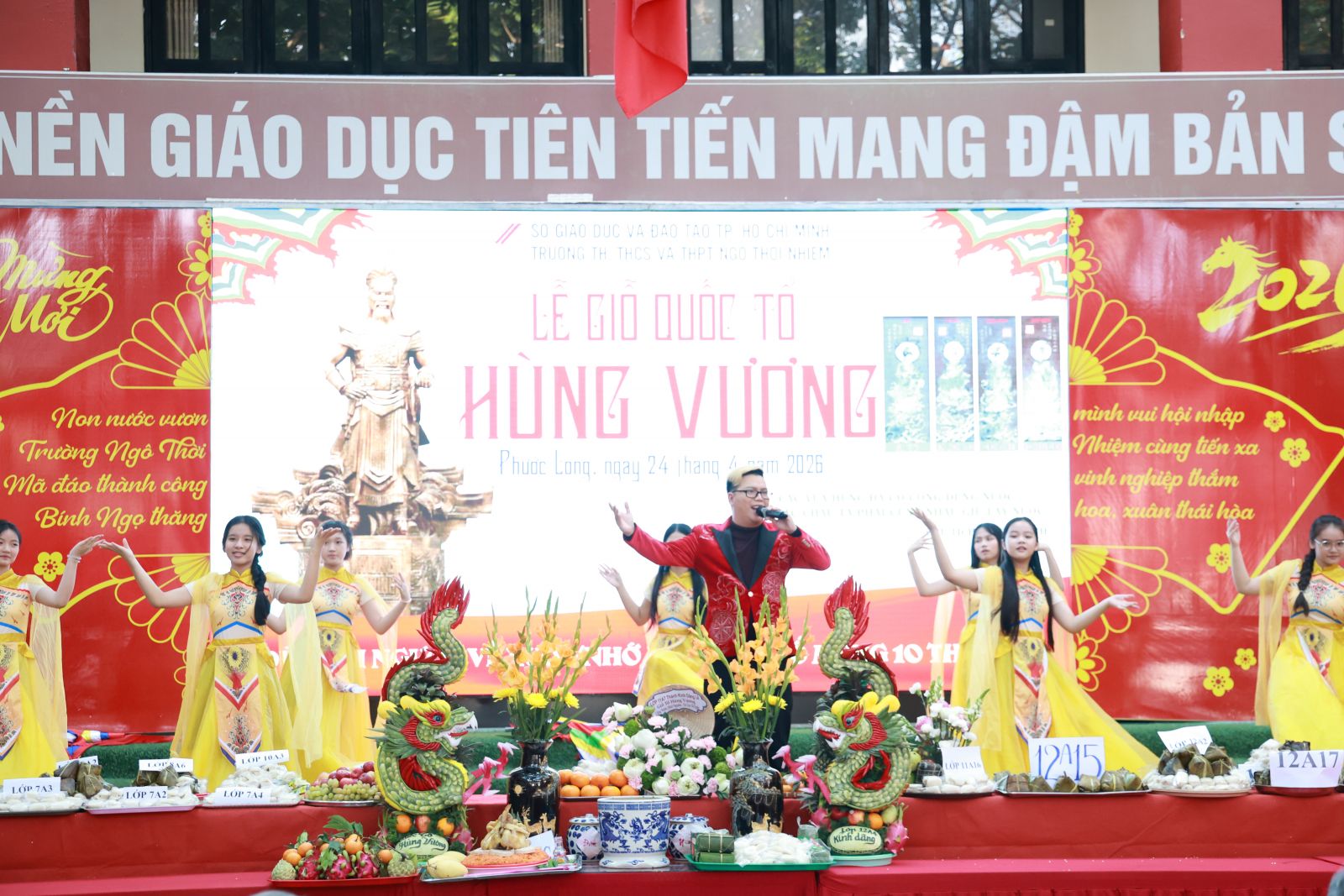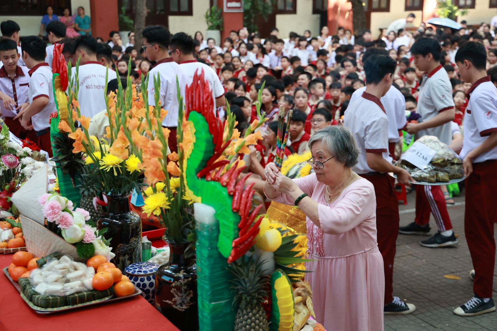 Buổi lễ diễn ra trong không khí trang nghiêm, thành kính với sự tham gia của tất cả đội ngũ cán bộ, giáo viên, nhân viên và học sinh toàn trường qua các nghi thức dâng lễ vật, dâng hương và các hoạt động ý nghĩa khác. Đây không chỉ là dịp để tri ân cội nguồn mà còn góp phần nâng cao tính giáo dục về truyền thống “uống nước nhớ nguồn”, hiểu hơn về lịch sử, giá trị văn hóa thiêng liêng của dân tộc, khơi dậy lòng tự hào dân tộc trong mỗi cá nhân.
