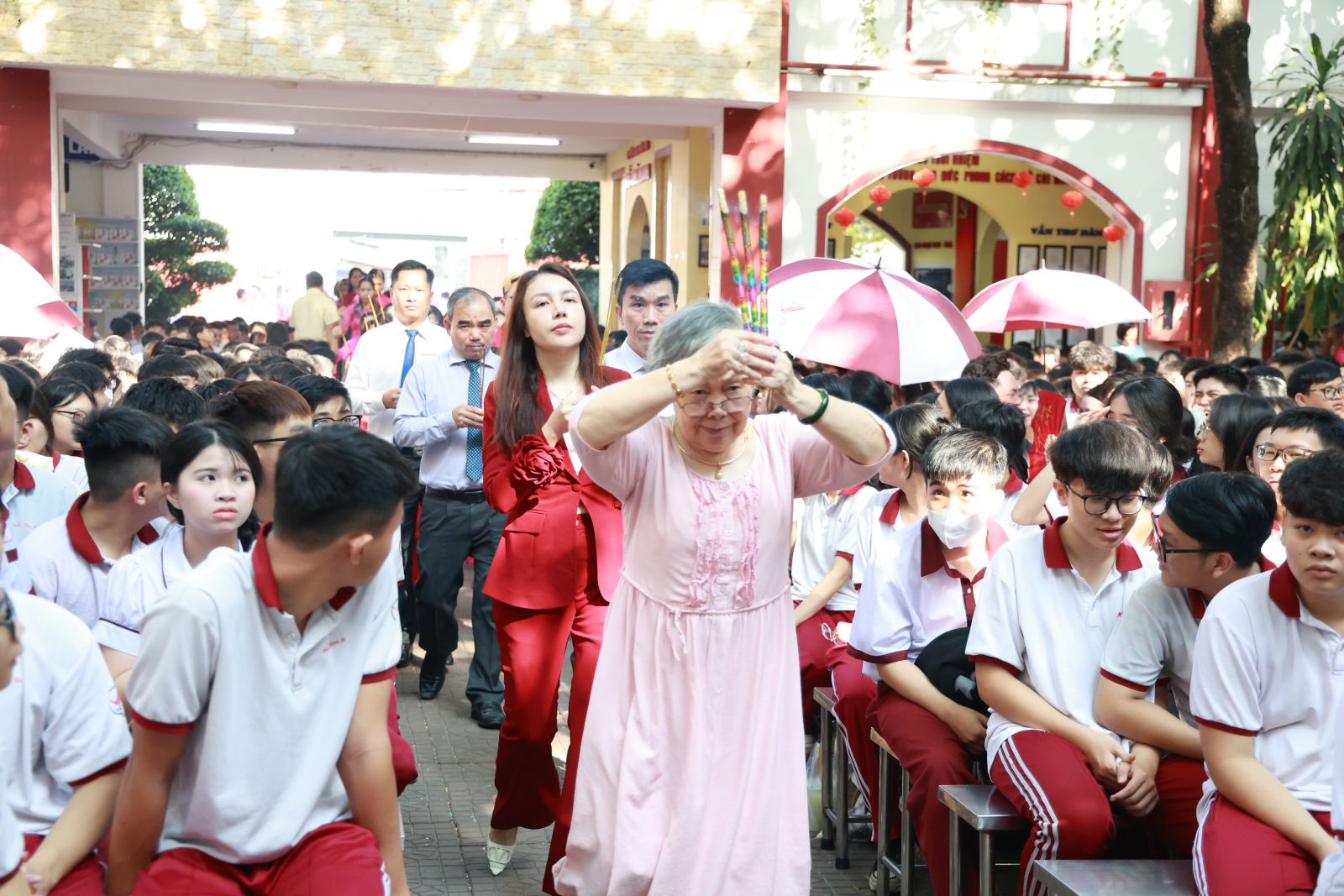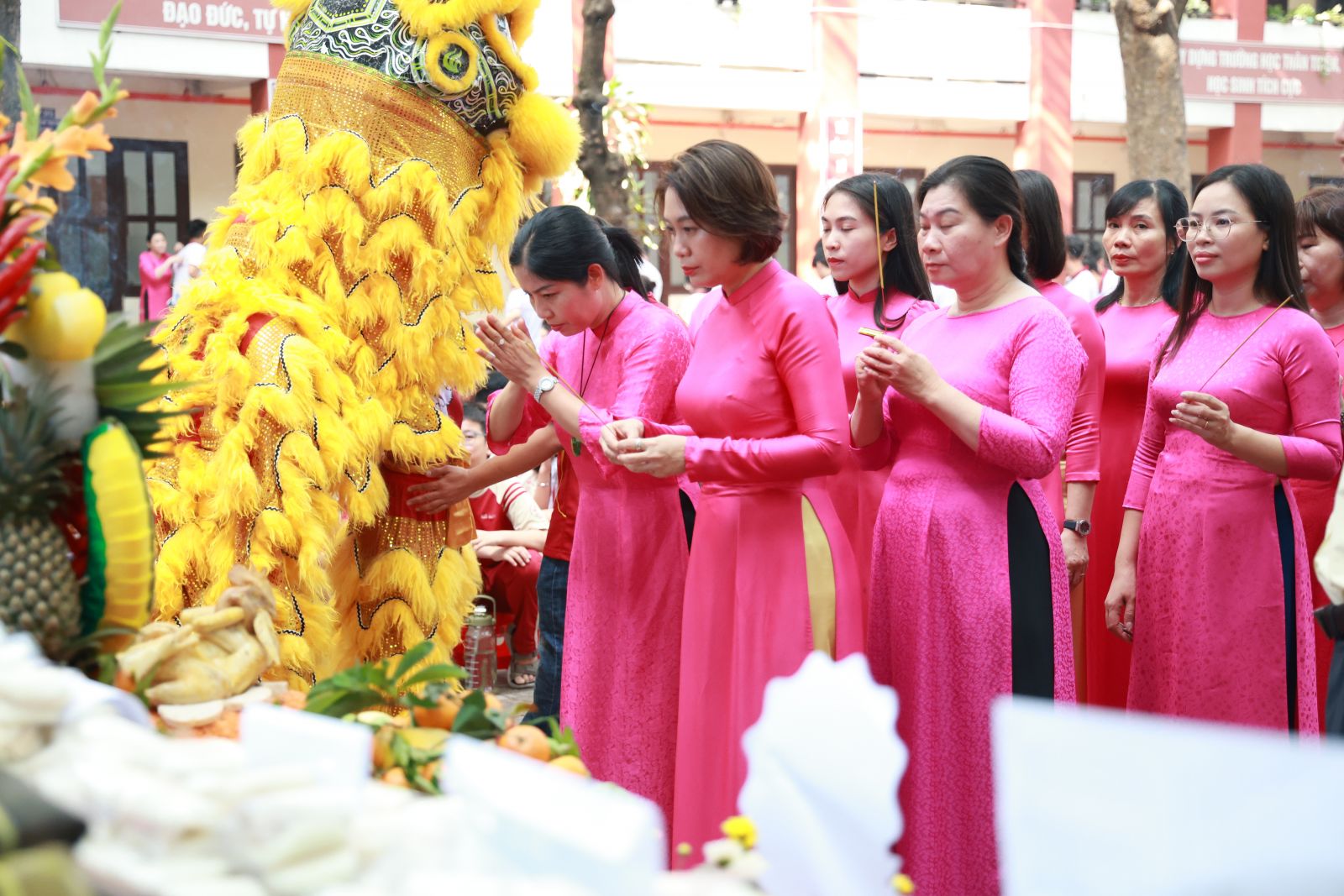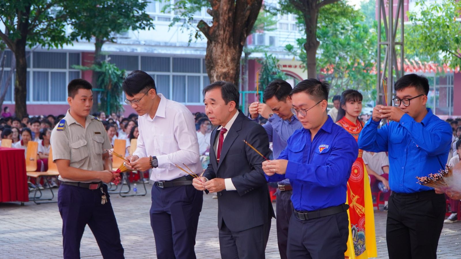 Buổi lễ diễn ra trong không khí trang nghiêm, thành kính với sự tham gia của tất cả đội ngũ cán bộ, giáo viên, nhân viên và học sinh toàn trường qua các nghi thức dâng lễ vật, dâng hương và các hoạt động ý nghĩa khác. Đây không chỉ là dịp để tri ân cội nguồn mà còn góp phần nâng cao tính giáo dục về truyền thống “uống nước nhớ nguồn”, hiểu hơn về lịch sử, giá trị văn hóa thiêng liêng của dân tộc, khơi dậy lòng tự hào dân tộc trong mỗi cá nhân.