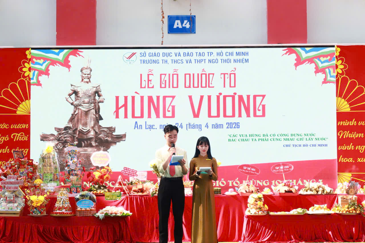 Hòa chung không khí thiêng liêng của cả nước, sáng ngày 24/4 hệ thống trường TH, THCS và THPT Ngô Thời Nhiệm đã long trọng tổ chức Lễ Giỗ Quốc Tổ Hùng Vương nhằm tưởng nhớ công lao dựng nước của các Vua Hùng - những vị tổ tiên đã đặt nền móng cho dân tộc Việt Nam.
