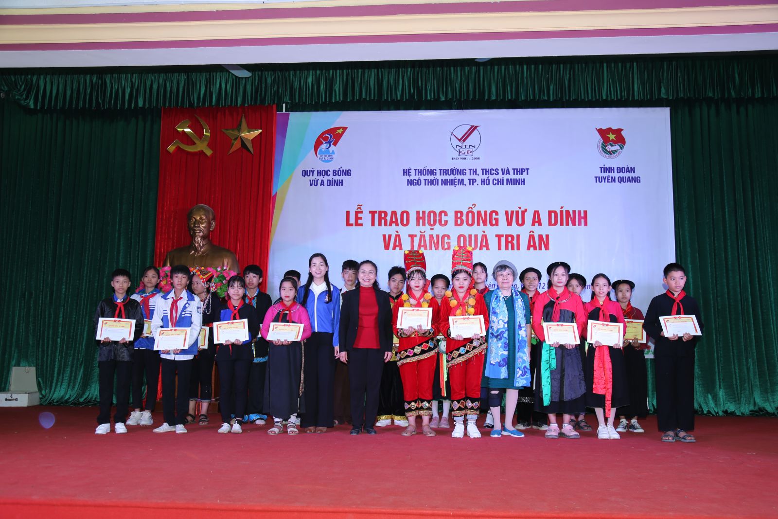 Ngày 17/12/2020, trường TH, THCS và THPT Ngô Thời Nhiệm phối hợp với tỉnh đoàn Tuyên Quang tổ chức Lễ trao học bổng Vừ A Dính tại huyện Sơn Dương, tỉnh Tuyên Quang trong không khí trang trọng và ấm áp. Chương trình nhằm hỗ trợ các em học sinh dân tộc thiểu số có hoàn cảnh khó khăn nhưng luôn nỗ lực vươn lên trong học tập.