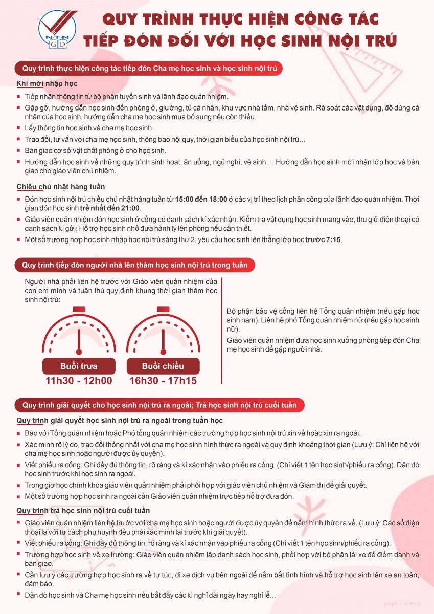 Quy trình thực hiện công tác tiếp đón đối với học sinh nội trú