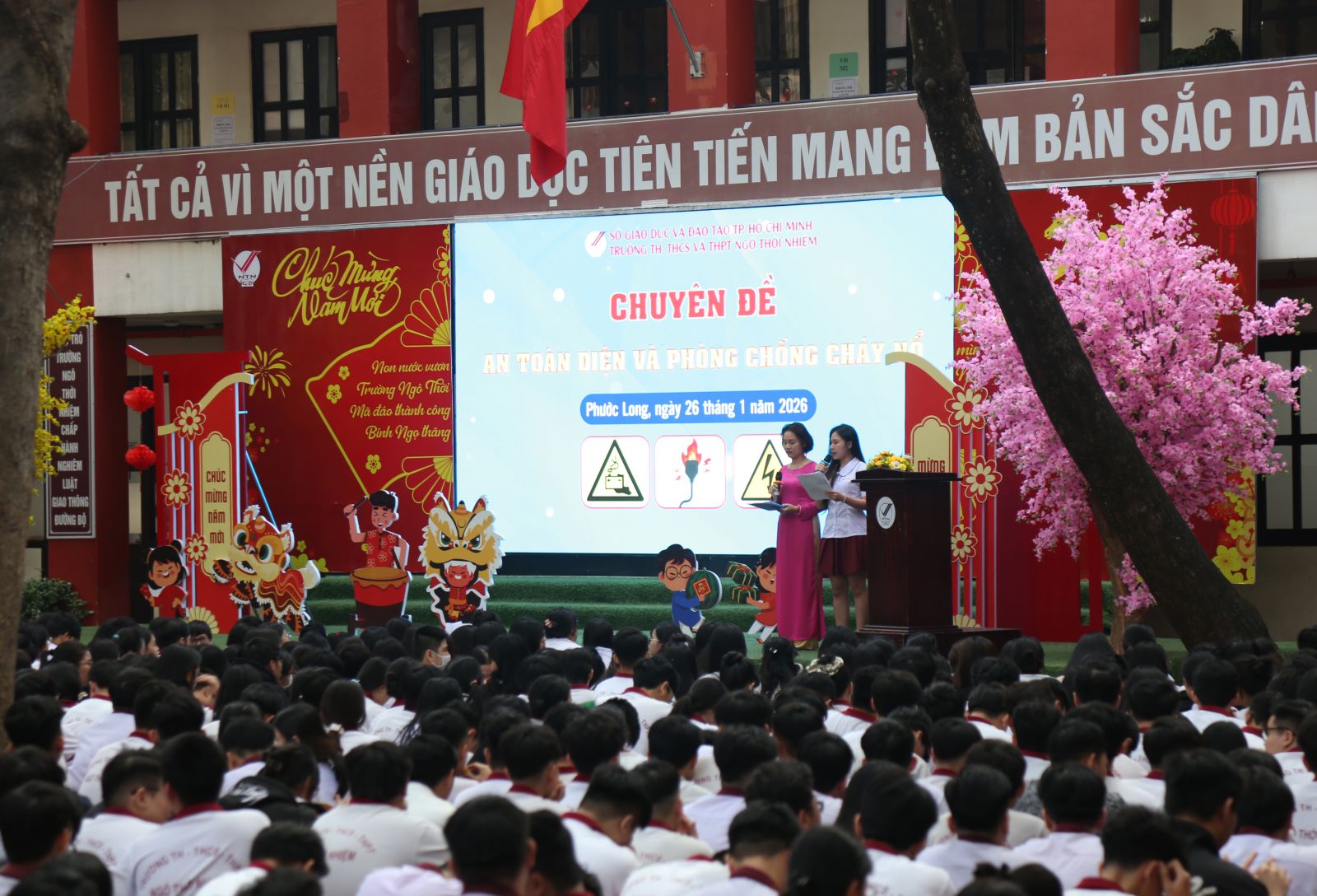 Nhằm trang bị cho học sinh những kiến thức, kỹ năng thiết thực trong việc sử dụng điện an toàn, đồng thời nâng cao ý thức phòng ngừa cháy nổ trong trường học và đời sống hằng ngày, sáng ngày 26/1, Trường TH, THCS và THPT Ngô Thời Nhiệm đã tổ chức chuyên đề “An toàn điện và phòng chống cháy nổ” cho học sinh toàn trường.
