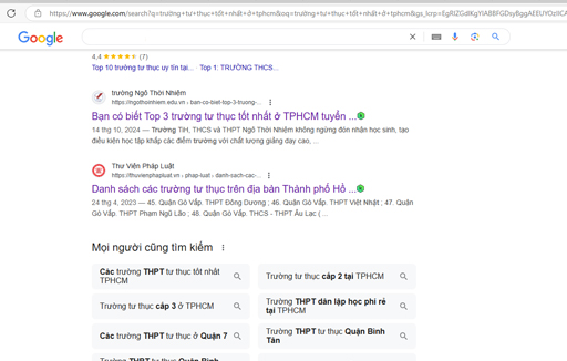 2. Tìm kiếm thông tin qua internet từ khóa “trường phổ thông tư thục TP.HCM”