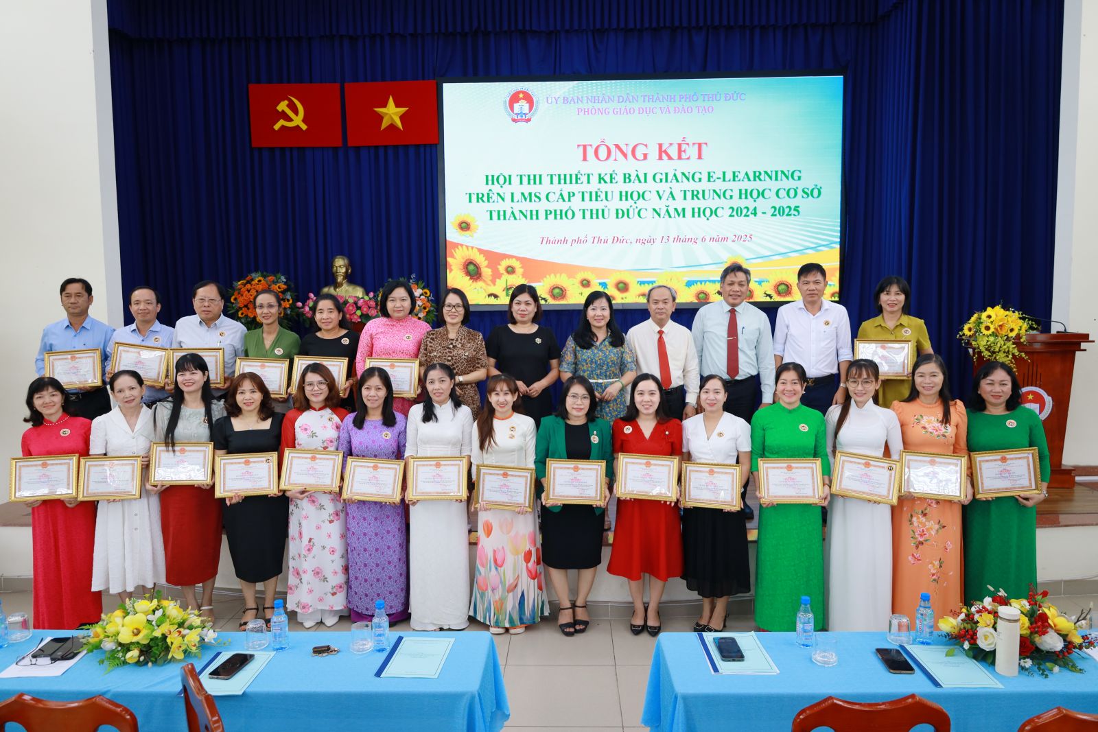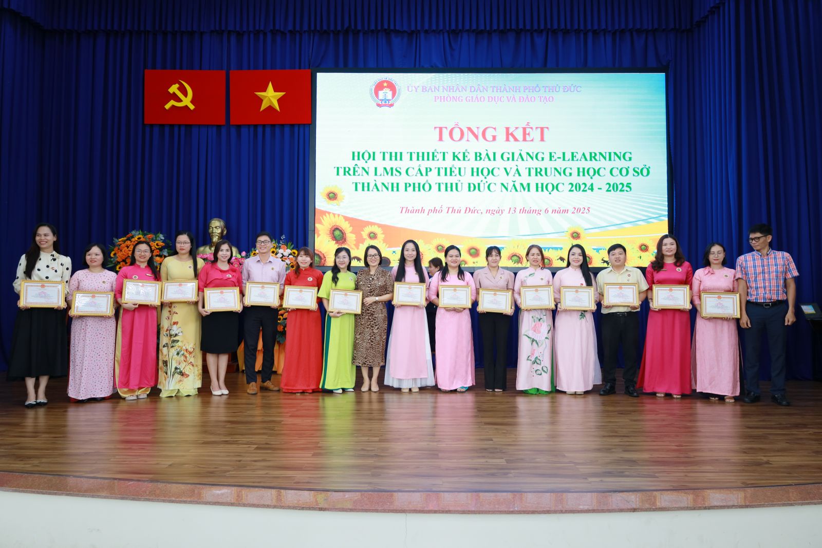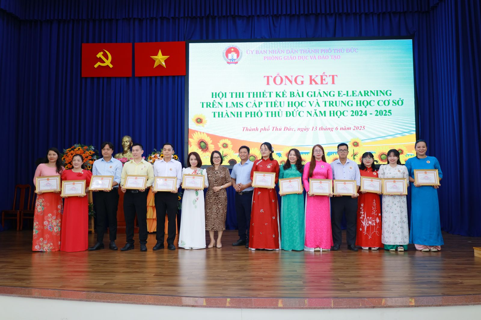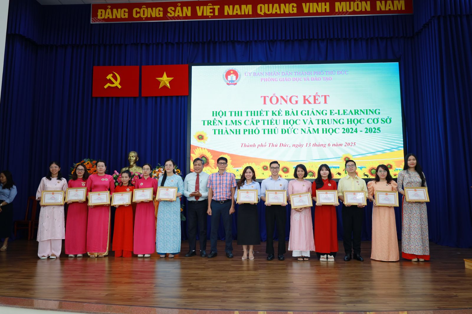 Sáng ngày 13/6, Phòng Giáo dục và Đào tạo TP. Thủ Đức đã tổ chức lễ tổng kết và trao giấy khen cho các tập thể, cá nhân đạt thành tích xuất sắc trong kỳ thi thiết kế bài giảng E-Learning cấp Thành phố năm học 2024–2025.