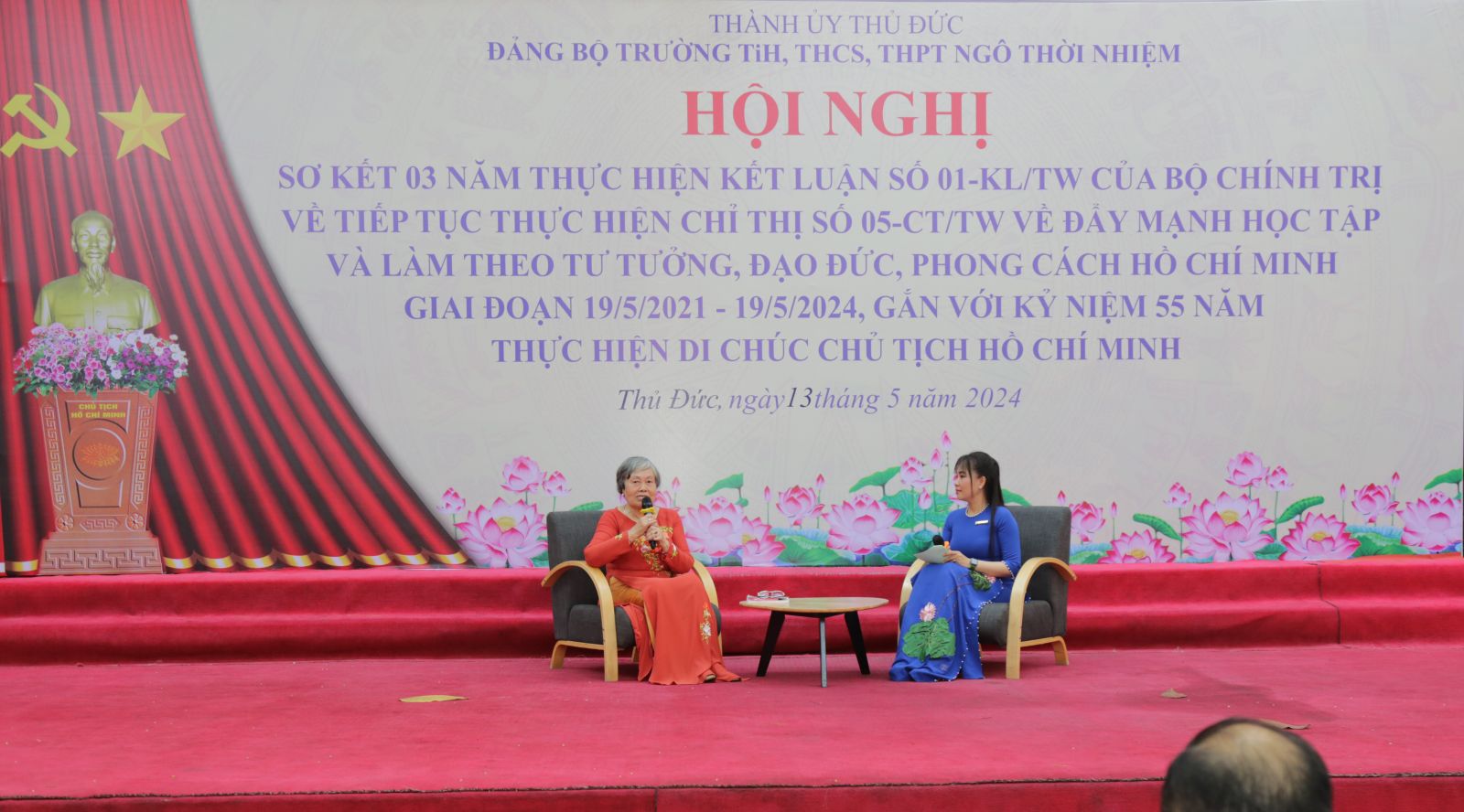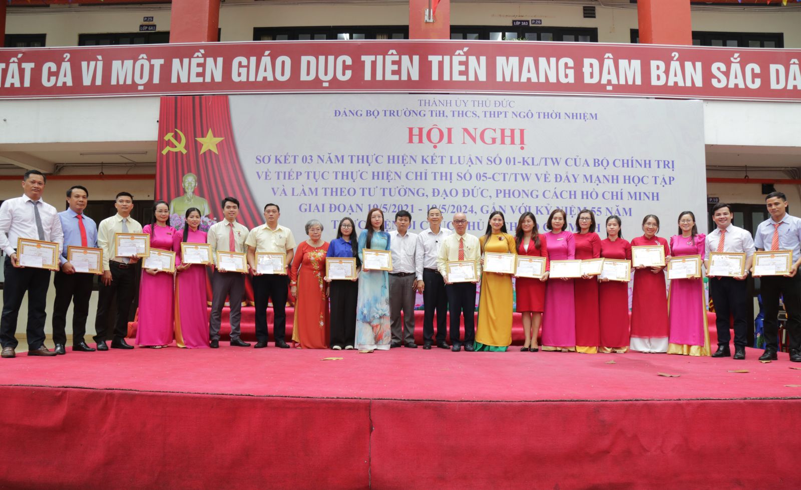 Nhằm đánh giá kết quả 03 năm thực hiện Kết luận số 01-KL/TW của Bộ Chính trị về đẩy mạnh học tập và làm theo tư tưởng, đạo đức, phong cách Hồ Chí Minh giai đoạn 19/5/2021 - 19/5/2024 và gắn với kỉ niệm 55 năm thực hiện Di chúc Bác Hồ. Sáng ngày 13/5, trường TH, THCS và THPT Ngô Thời Nhiệm đã tổ chức hội Hội nghị sơ kết để nhìn nhận lại kết quả đạt được trong 3 năm qua.
