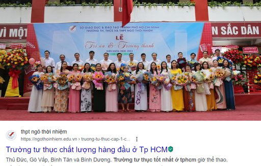 Hệ thống trường TiH, THCS và THPT trường nội trú tốt nhất ở tphcm Ngô Thời Nhiệm đã xuất hiện ở nội dung tìm kiếm trên Google, Bing, Cốc Cốc...