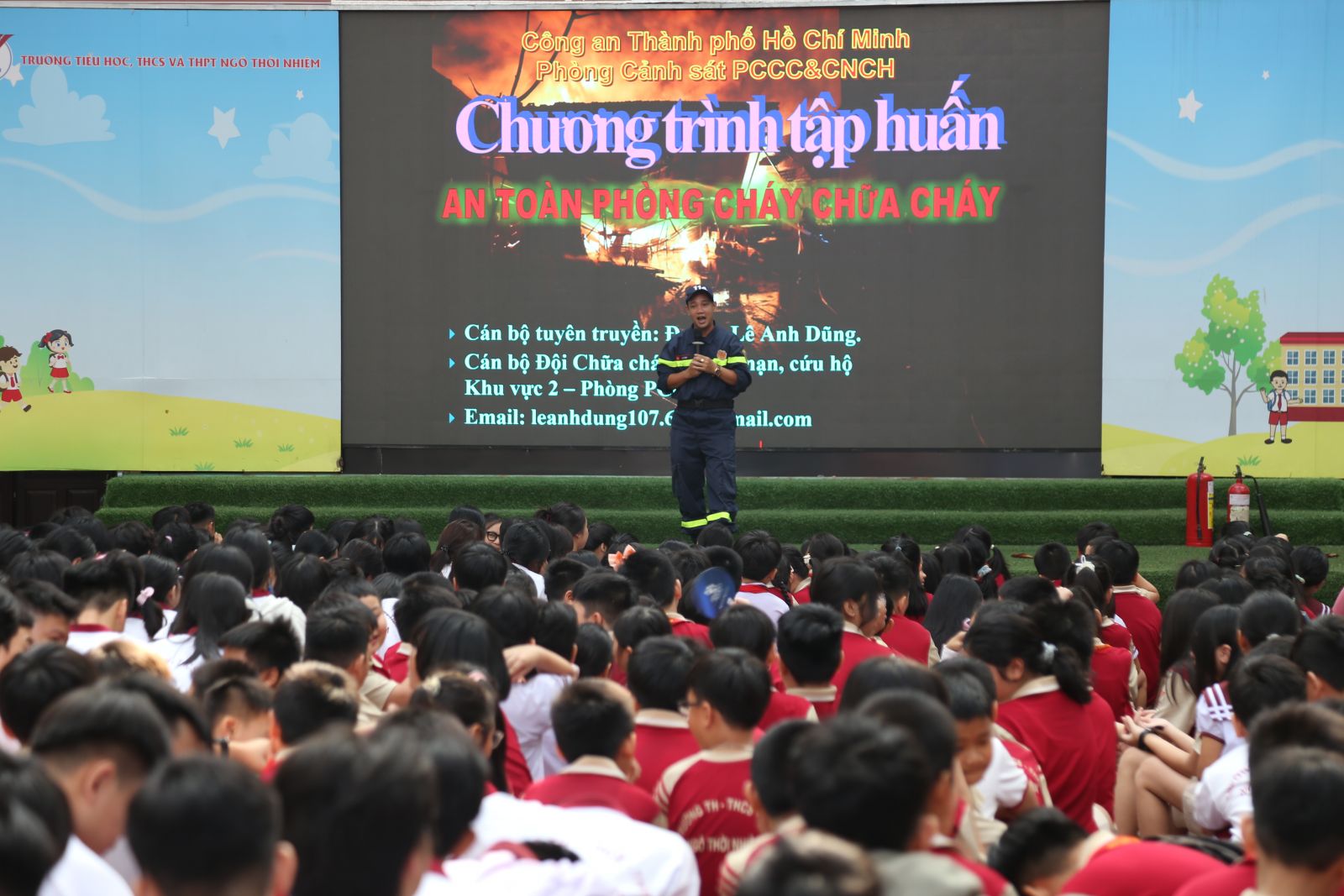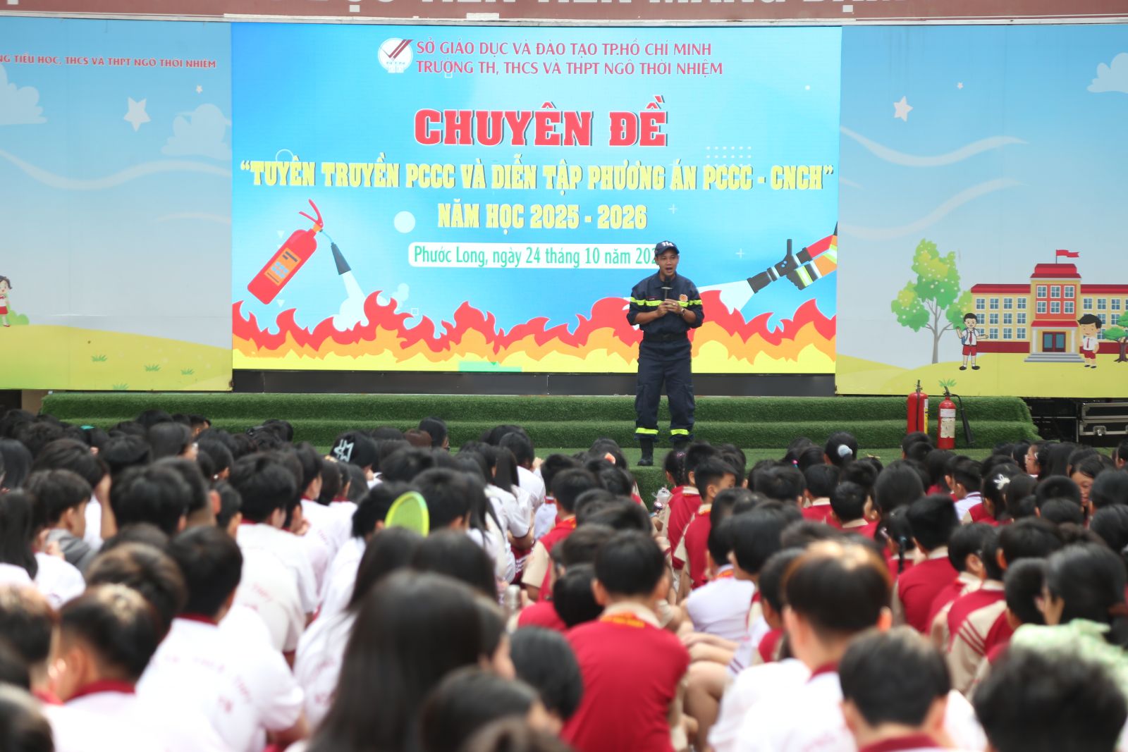 Thực hiện công tác tuyên truyền, giáo dục pháp luật và nâng cao ý thức phòng chống cháy nổ trong trường học, sáng ngày 24/10, trường TH, THCS và THPT Ngô Thời Nhiệm đã tổ chức chuyên đề “Tuyên truyền Phòng cháy chữa cháy và tập huấn PCCC – CNCH” dành cho cán bộ, giáo viên và học sinh toàn trường.