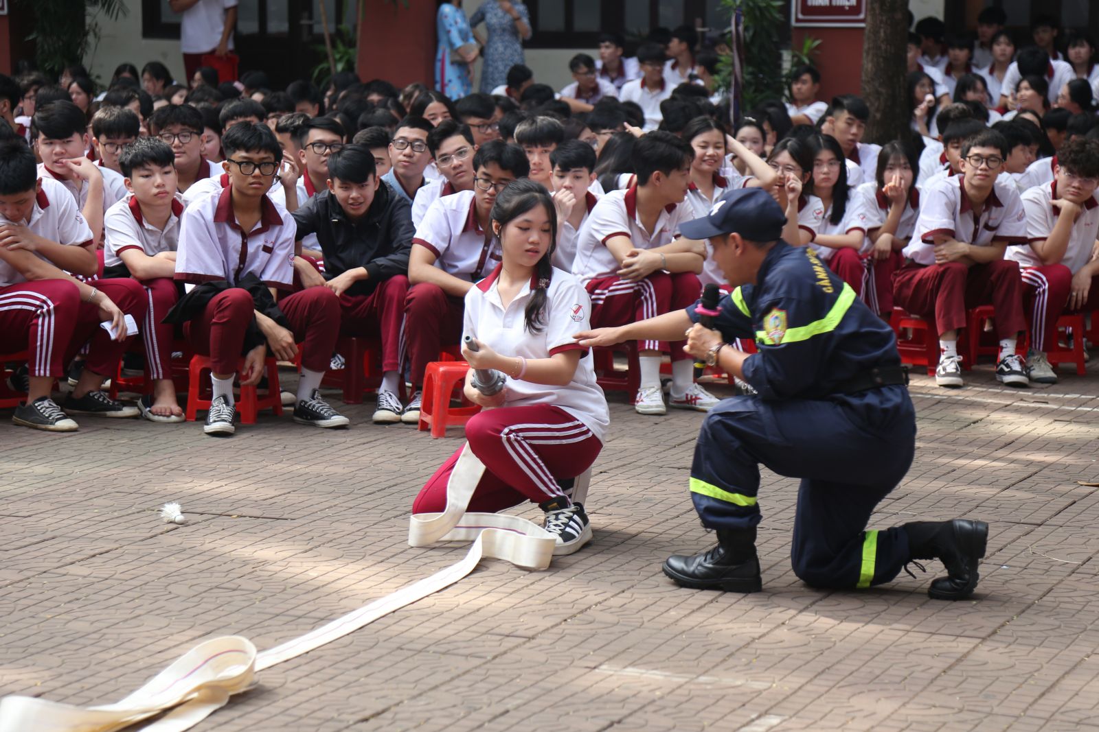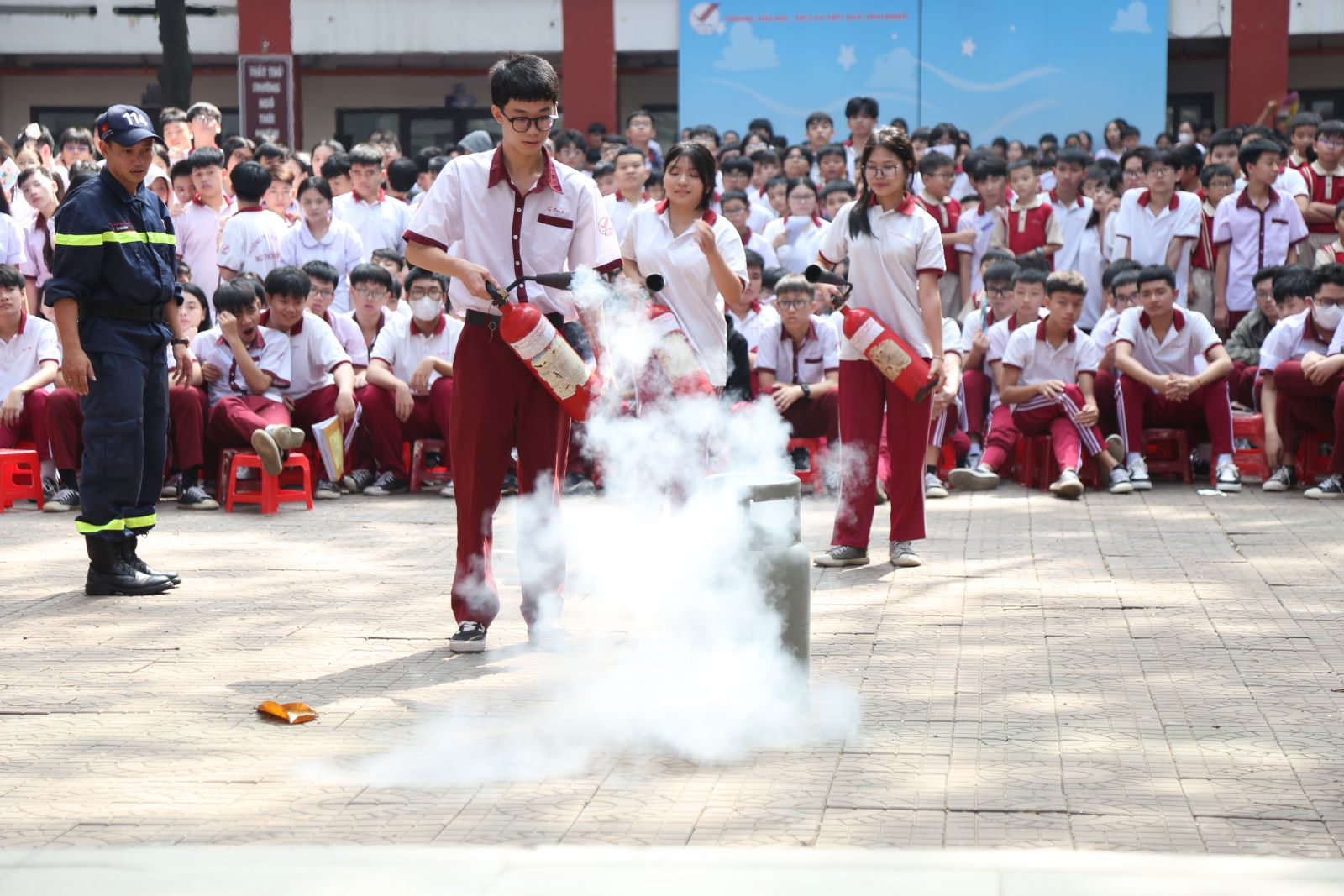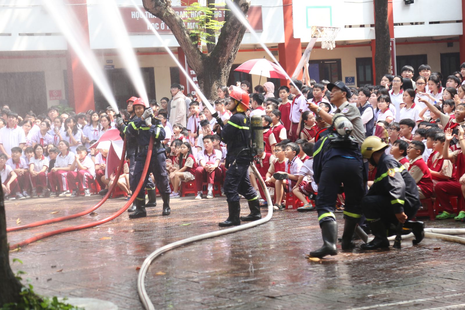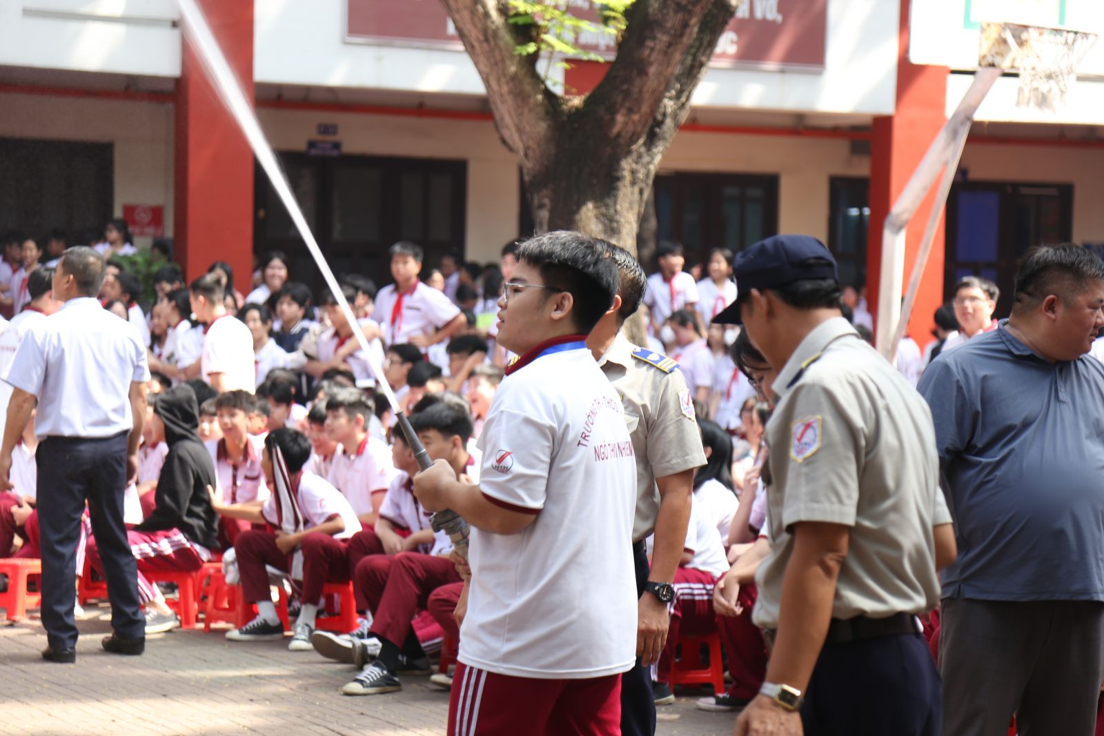 Đặc biệt, phần thực hành chữa cháy đã diễn ra sôi nổi và trực quan, giúp học sinh, giáo viên được trực tiếp trải nghiệm tình huống giả định, rèn luyện kỹ năng xử lý nhanh, bình tĩnh, chính xác khi có sự cố xảy ra.