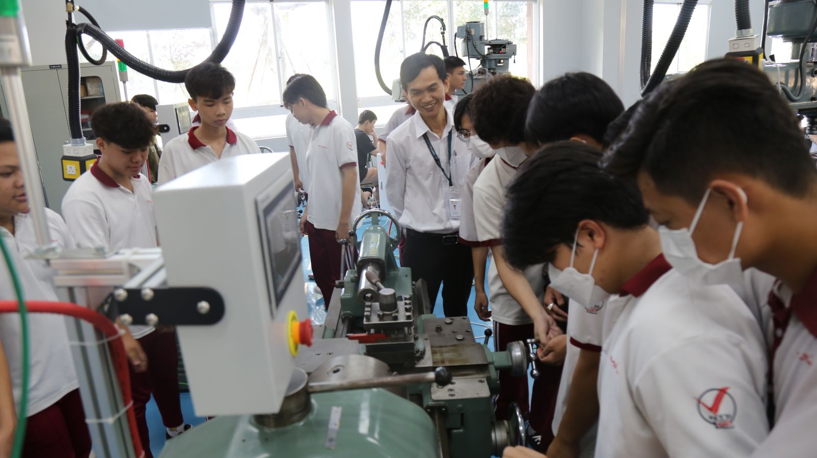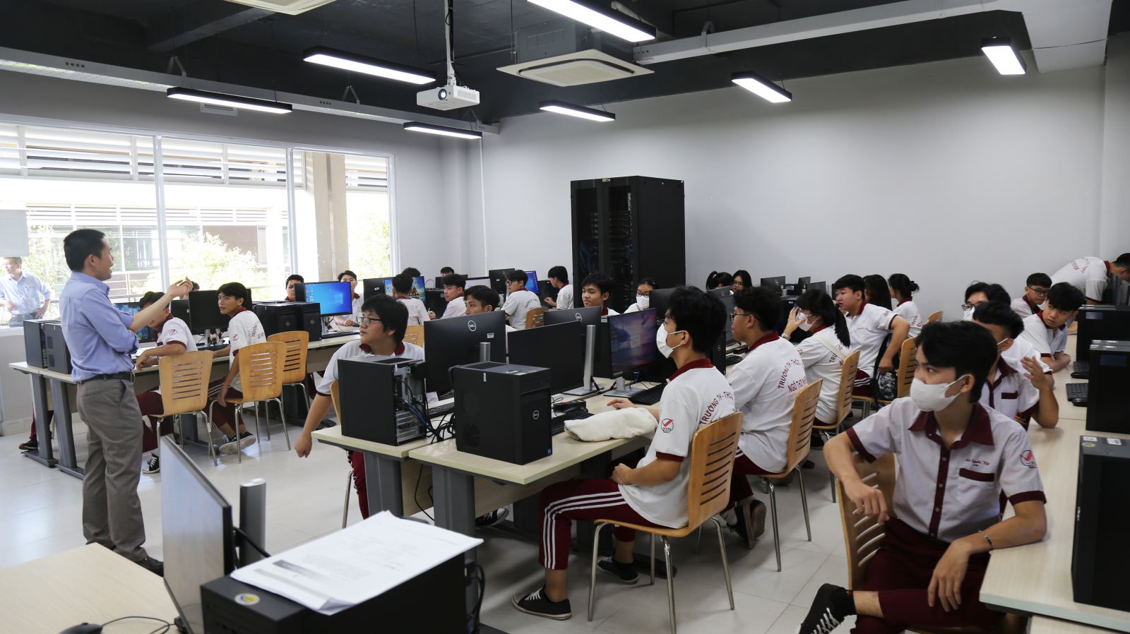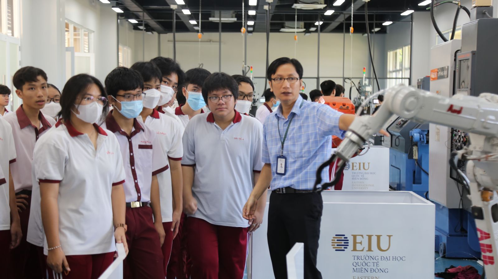 Học sinh lớp 12 đã có những trải nghiệm thú vị khi được chứng kiến cơ sở vật chất, trang thiết bị đạt chuẩn quốc tế của trường ĐH Quốc tế Miền Đông. Chương trình tham quan không chỉ tạo cơ hội cho các em học sinh Trường TiH, THCS & THPT Ngô Thời Nhiệm giao lưu, học hỏi thêm nhiều kiến thức bổ ích mà còn giúp các em tìm hiểu ngành học mình yêu thích, từ có những định hướng đúng đắn cho việc chọn ngành, chọn nghề trong thời gian tới.