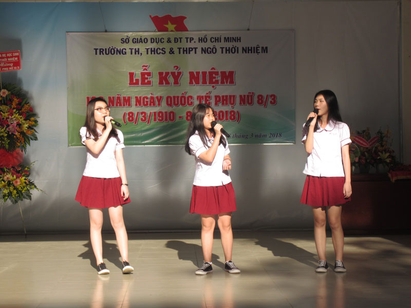 Để kỷ niệm khởi nghĩa hai Bà Trưng và hưởng ứng ngày Quốc Tế Phụ Nữ 8-3, vào lúc 7h30 ngày 08-3-2018, Trường TiH, THCS, THPT Ngô Thời Nhiệm đã tổ chức Lễ kỷ niệm chào mừng Ngày Quốc Tế Phụ Nữ. Đến dự có toàn thể cán bộ, công nhân viên chức, học sinh nhà trường.