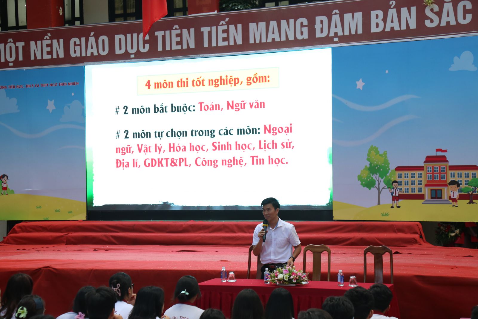 Nhằm giúp học sinh định hướng đúng đắn và lựa chọn tổ hợp môn thi phù hợp với năng lực, sở thích cũng như nguyện vọng nghề nghiệp trong tương lai, sáng 14/5, Ban Giám Hiệu Trường TH, THCS và THPT Ngô Thời Nhiệm đã tổ chức buổi tư vấn chọn môn thi tốt nghiệp THPT dành cho học sinh khối 10 và 11.