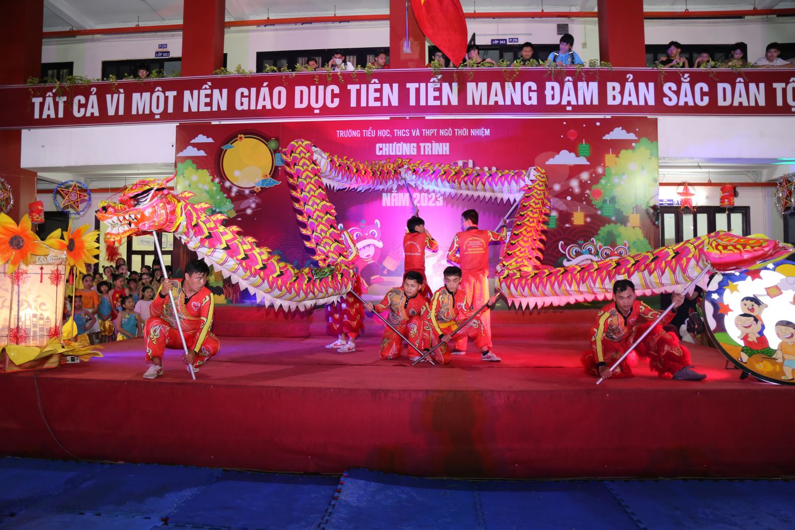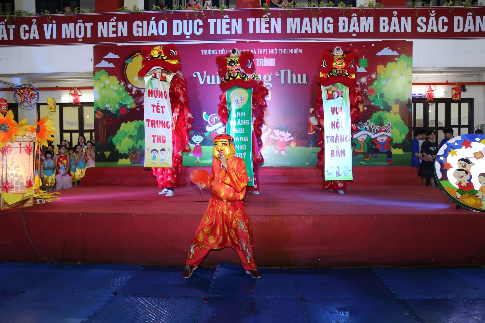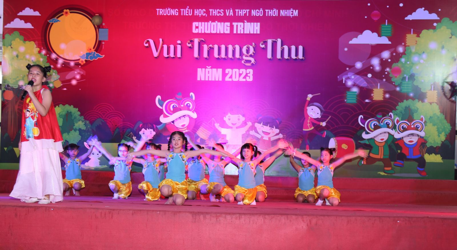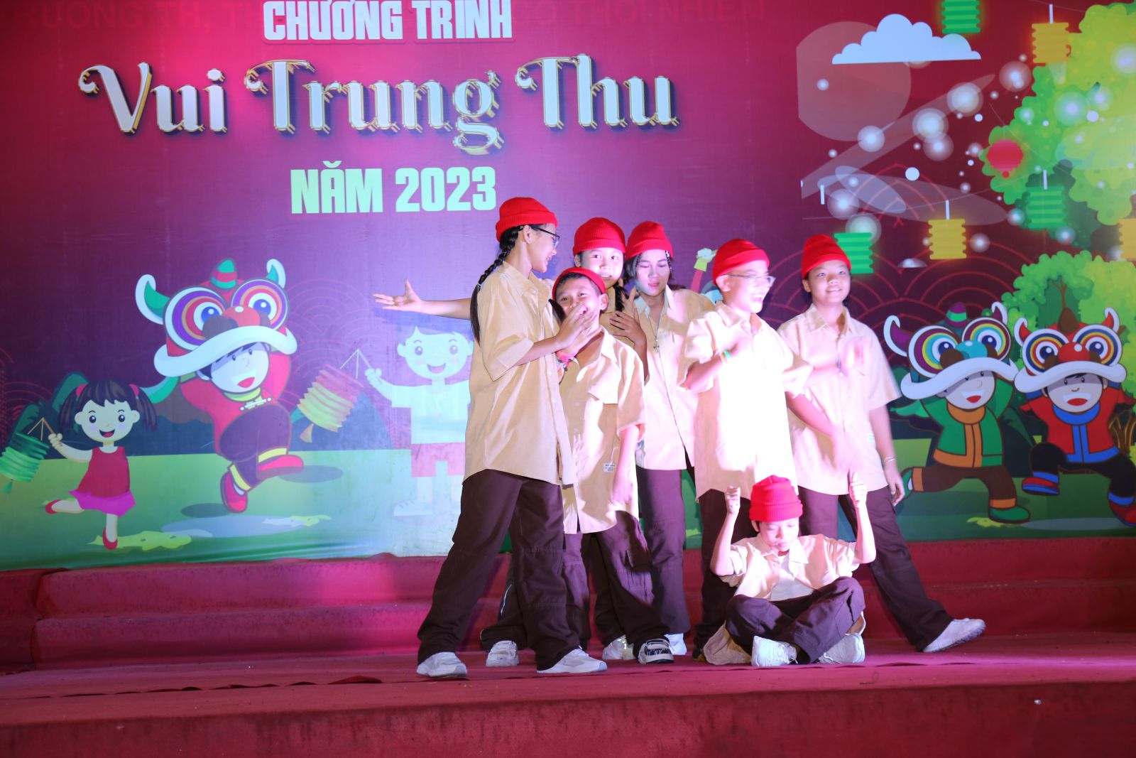 Tại đây, các em thiếu nhi được thưởng thức các tiết mục văn nghệ đơn ca, nhảy, múa lân sư rồng. Chương trình diễn ra với mục đích tạo không khí vui tươi, sôi nổi, tạo sân chơi lành mạnh cho các em thiếu nhi của trường; thể hiện sự quan tâm chăm lo, động viên tinh thần cho các em thiếu nhi, giúp các em đón Tết Trung thu tràn đầy hạnh phúc.